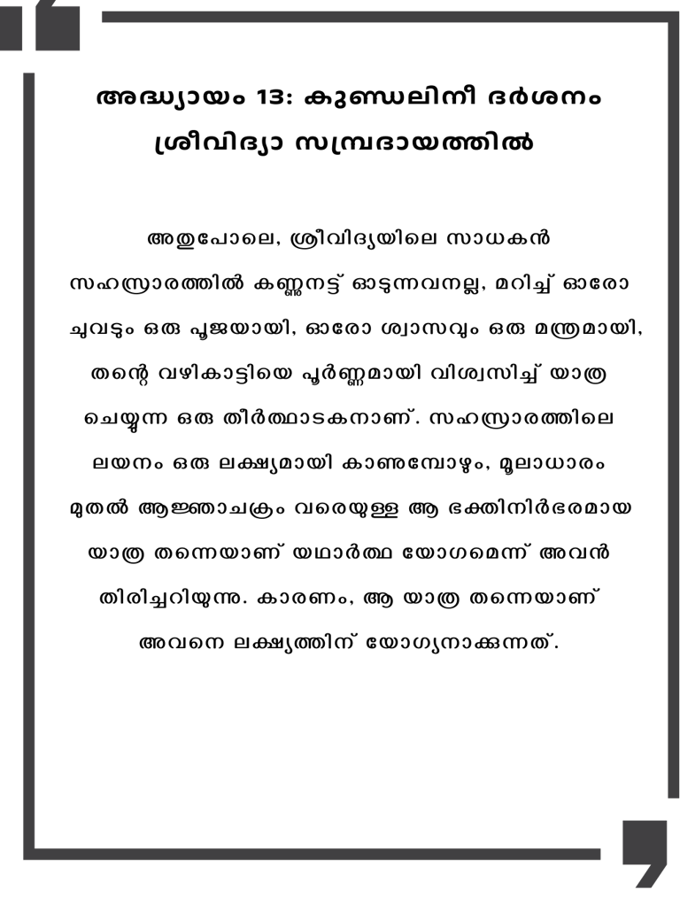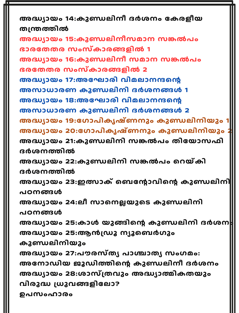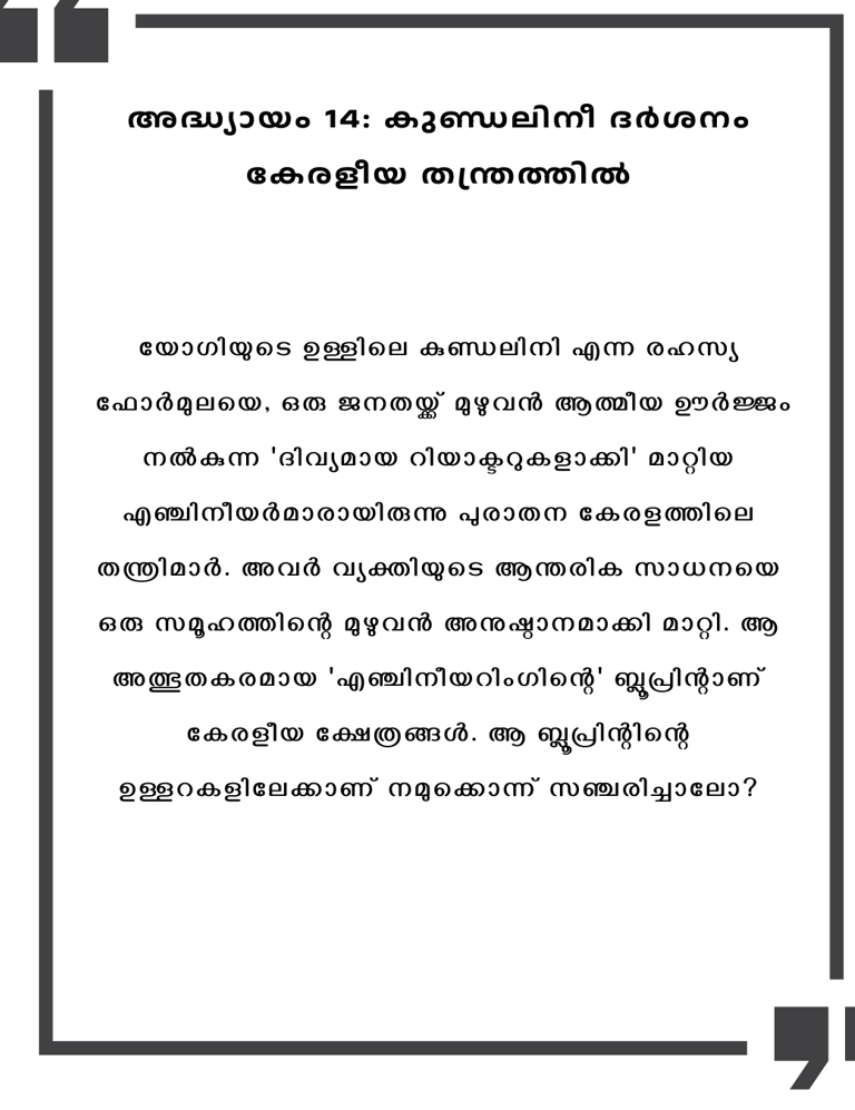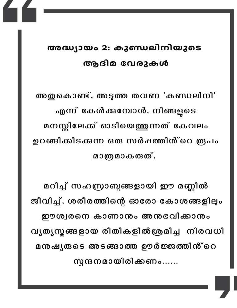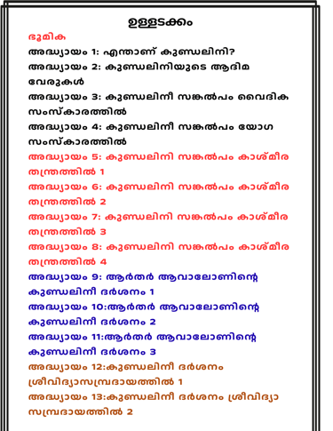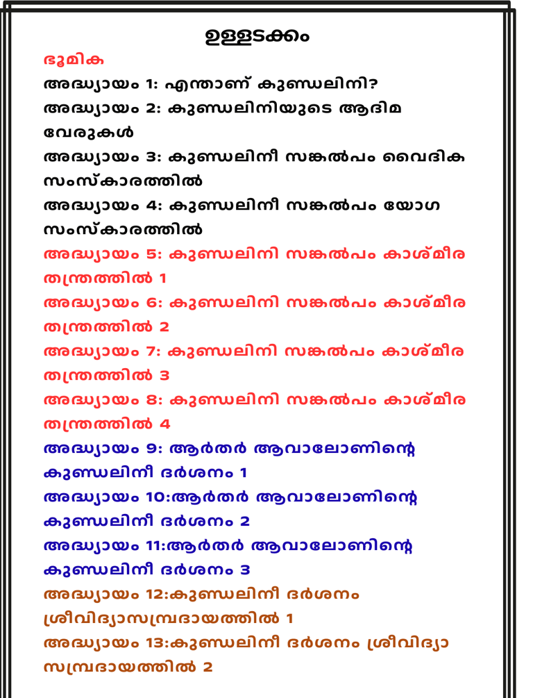 കുണ്ഡലിനീ സങ്കല്പത്തിന്റെ ഉദയത്തെയും വികാസത്തെയും കുറിച്ച് എഴുതപ്പെടുന്ന മലയാളത്തിലെ ആദ്യത്തെ ഗ്രന്ഥം