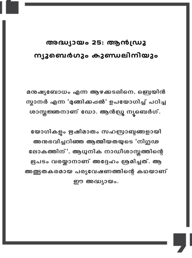 കുണ്ഡലിനീ ഉദ്ധാനത്തിന്റെ ലക്ഷണങ്ങളെ നാഡീശാസ്ത്രപരമായി വിശദീകരിക്കാൻ ശ്രമിക്കുന്ന ആദ്യത്തെ മലയാള ഗ്രന്ഥം